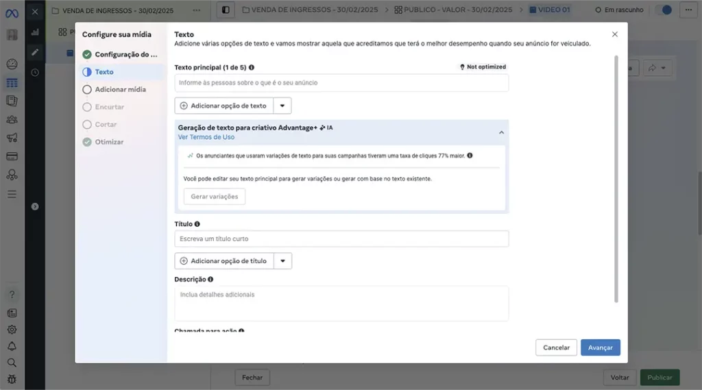 7. Crie o Criativo do Anúncio