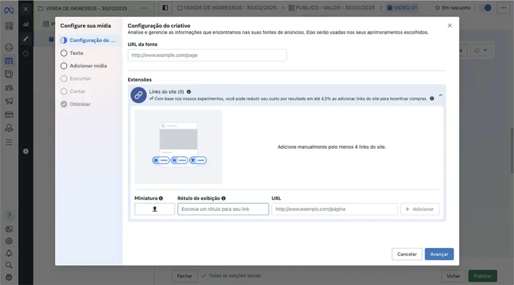 Passo 9: Configuração do(s) ANÚNCIO(S)
