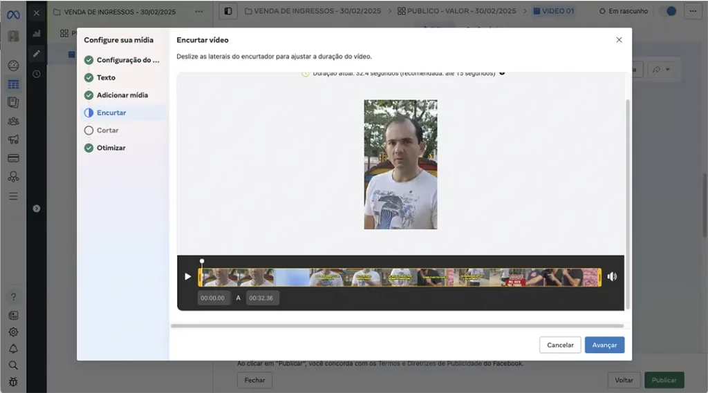 Nessa sessão Encurtar Vídeo, clique direto em Avançar