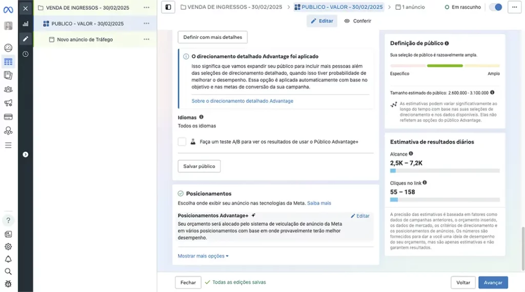 1. Dê um nome para seu Conjunto de Anúncios – Ex: PUBLICO – VALOR – 30/02/2025